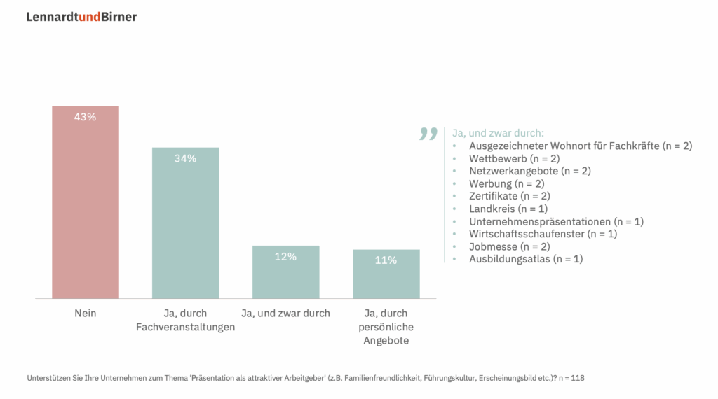 Fast die Hälfte unterstützt Unternehmen nicht zum Thema „Präsentation als attraktiver Arbeitgeber“.