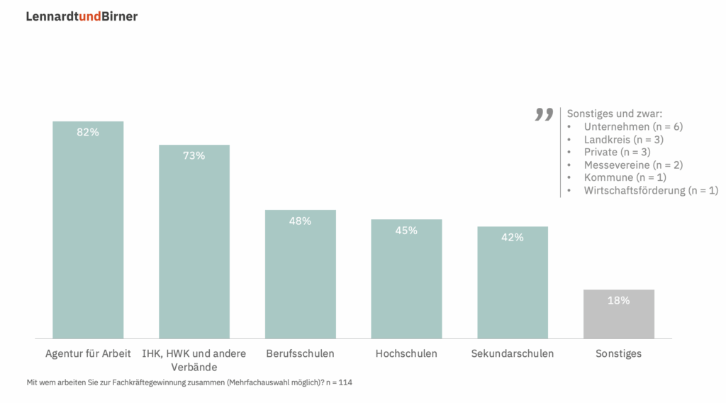 Die Wirtschaftsförderung arbeitet zur Fachkräftegewinnung hauptsächlich mit der Agentur für Arbeit und IHK/HWK/ Verbänden.