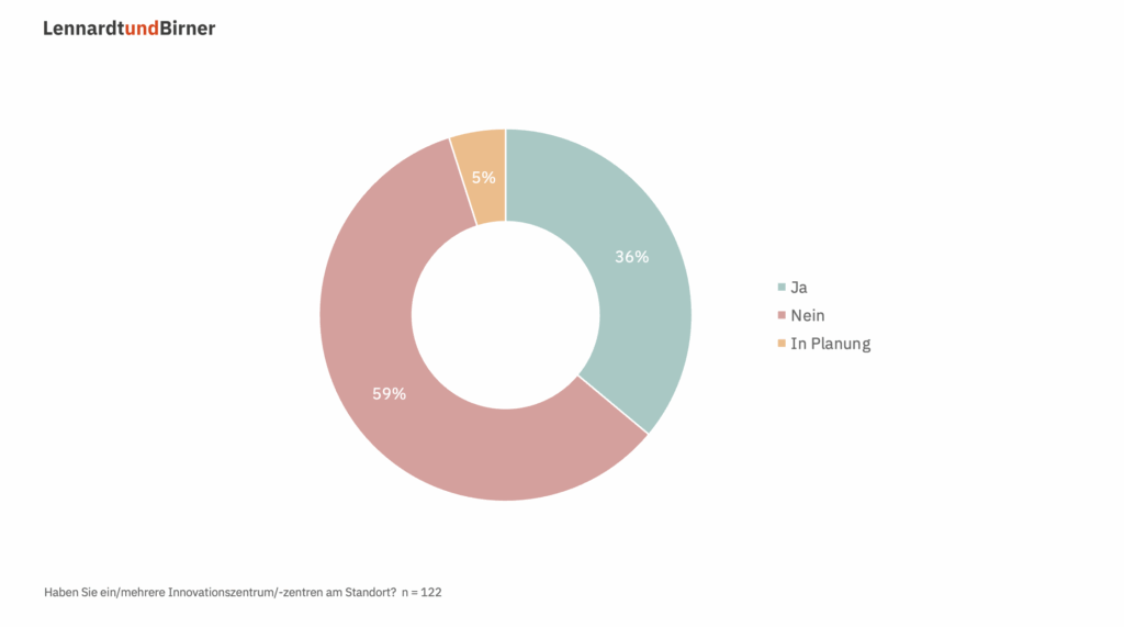 Mehr als die Hälfte der Standorte weiterhin ohne Innovationszentrum – 2023 lag der Anteil bei 62 Prozent.