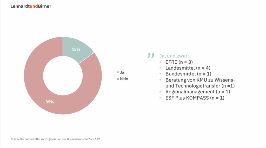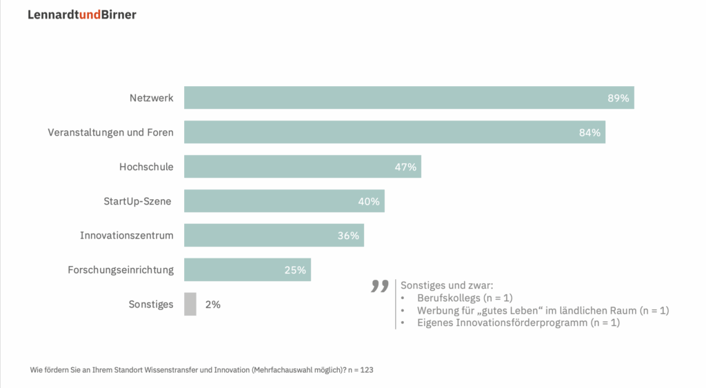 Die Mehrheit setzt auf Netzwerke, Veranstaltungen sowie Foren für Wissenstransfer und Innovation am Standort. Fördermittel werden dazu sehr wenig genutzt.